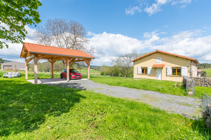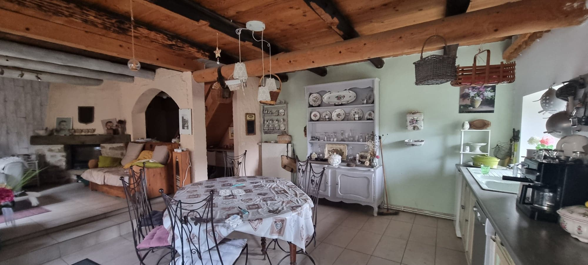 Ferme en pierre entierement rénovée avec une maison principale composée au rez de chaussée : un salon cusine, une salle d'eau et une ancienne écurie pour du stockage; au premier étage : 3 chambres, et une salle de bain.