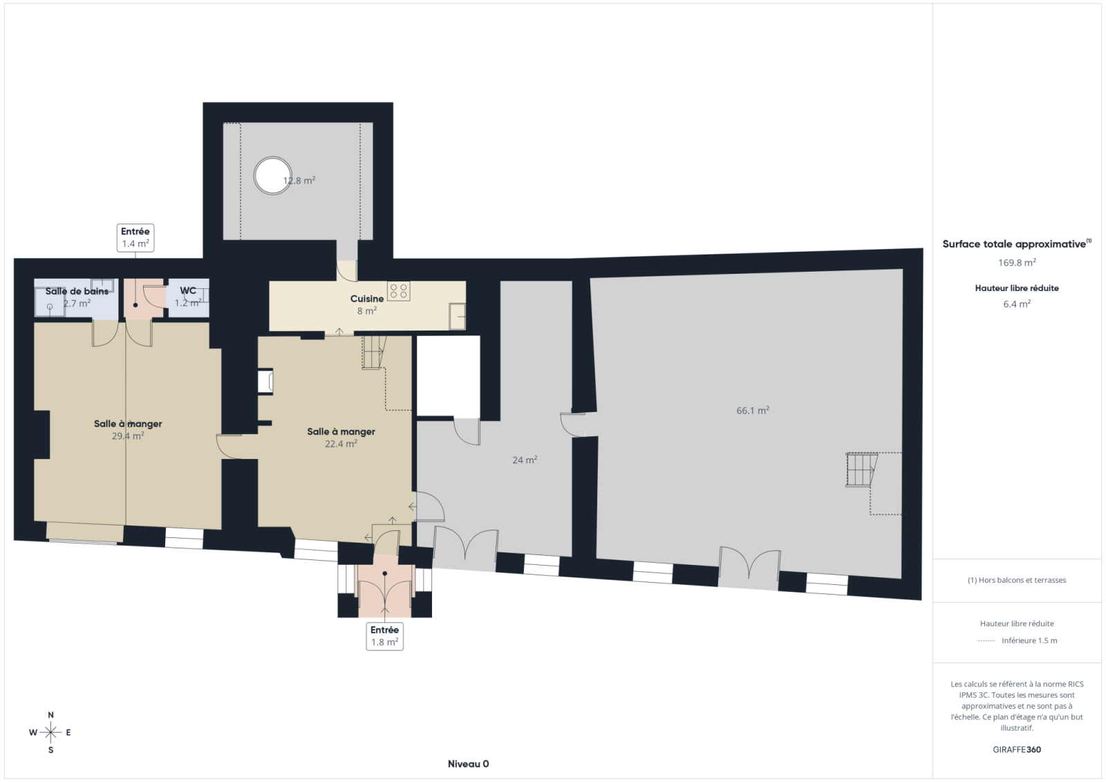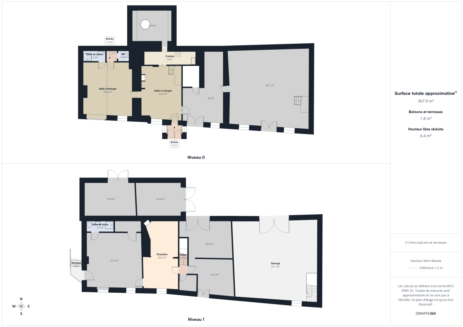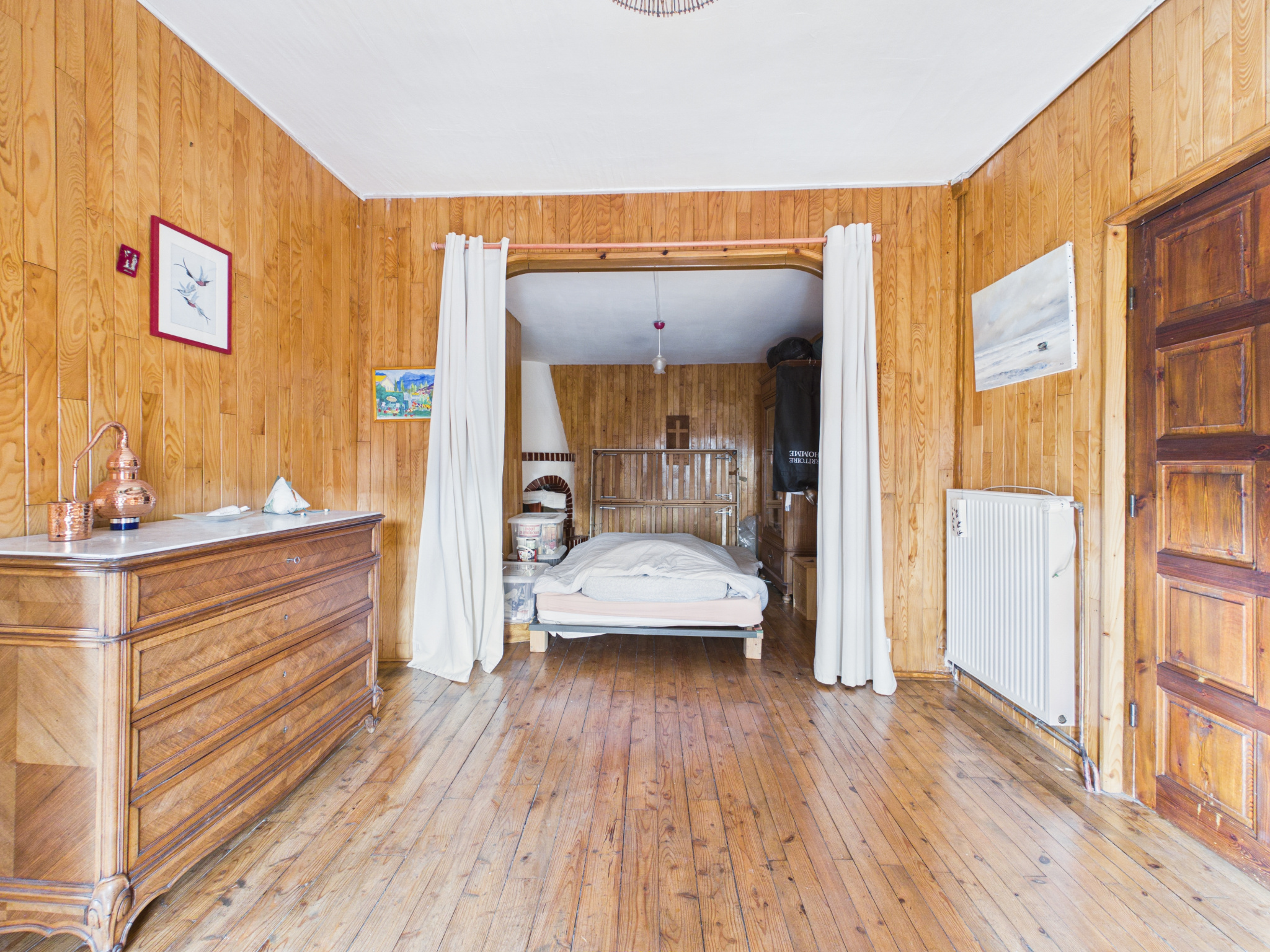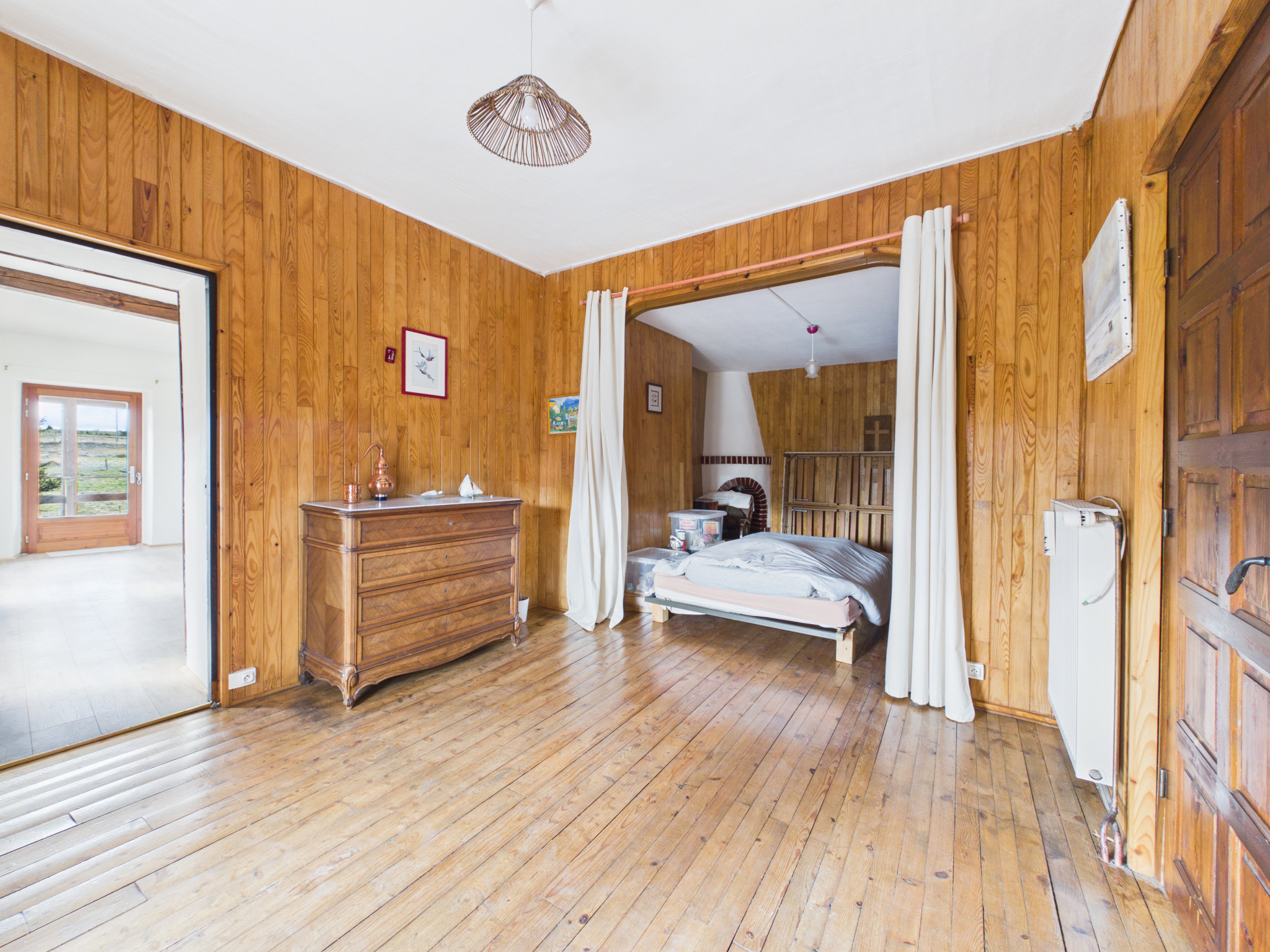 L'étage comprend une grande pièce avec accès extérieur et un espace nuit modulable, salle d'eau et toilette.
