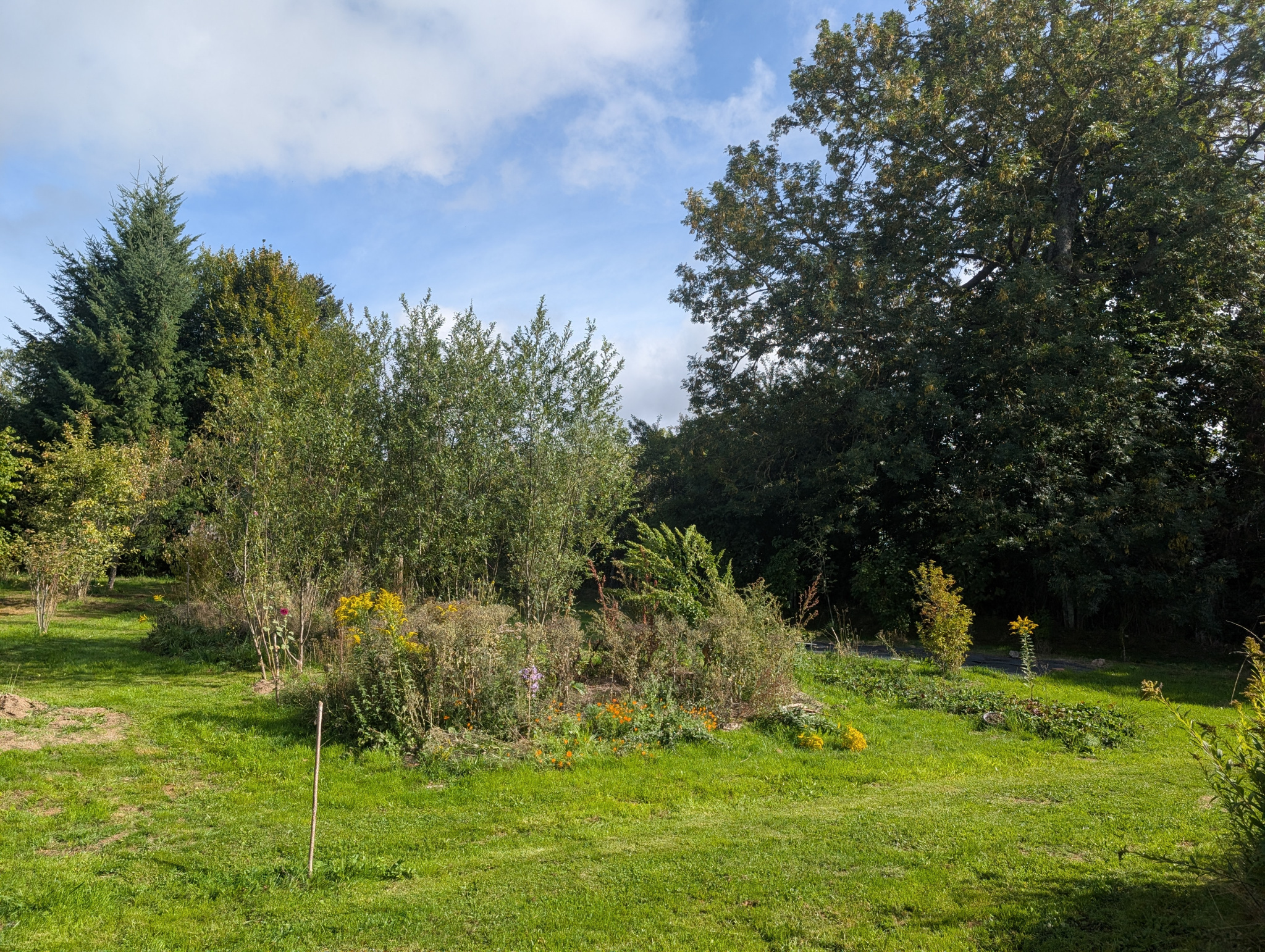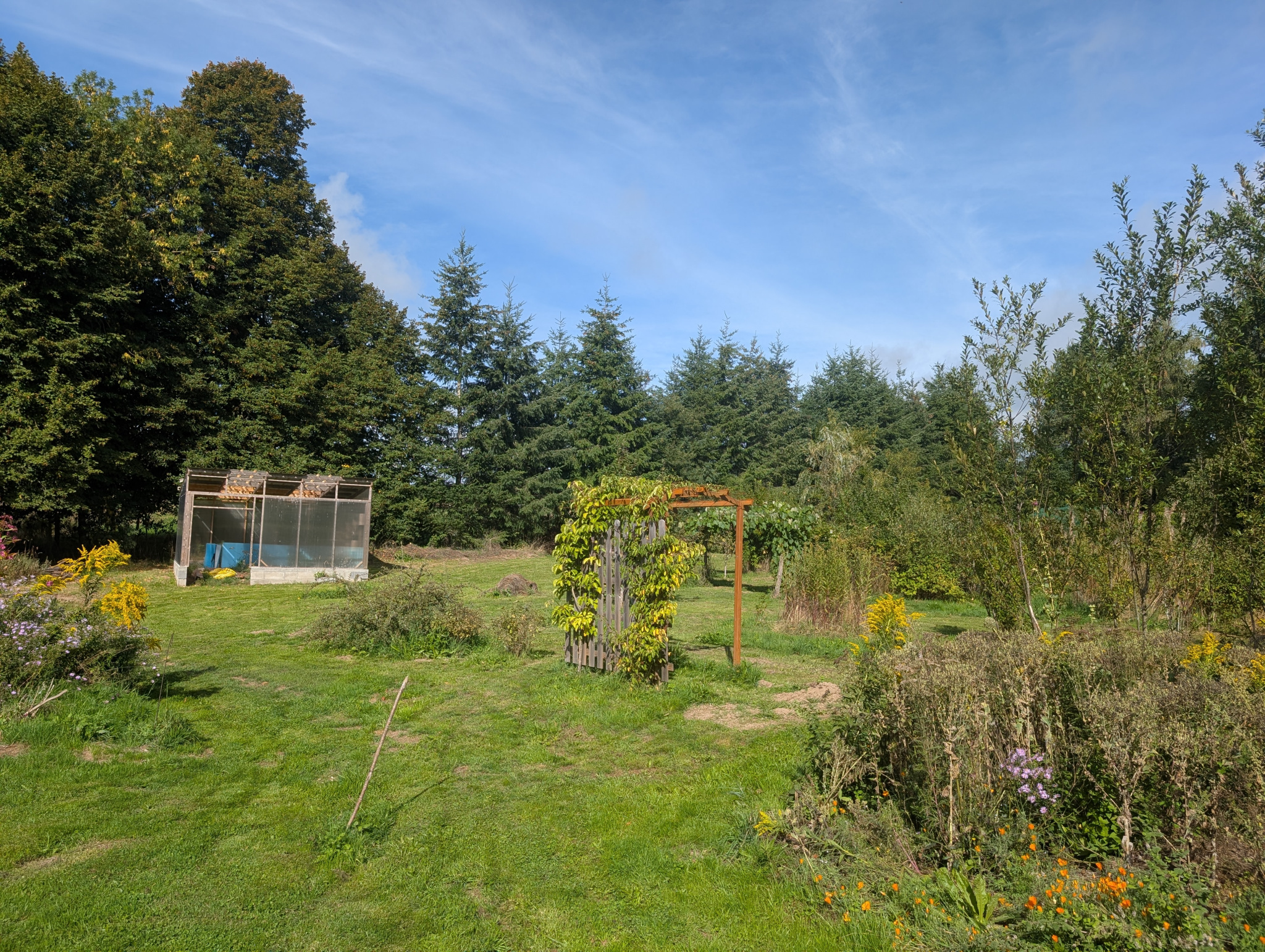 A l'extérieur, vous profiterez d'un grand jardin de 3 908 m² en partie arboré, verger, potager, serre ainsi qu'un forage avec une eau potable.