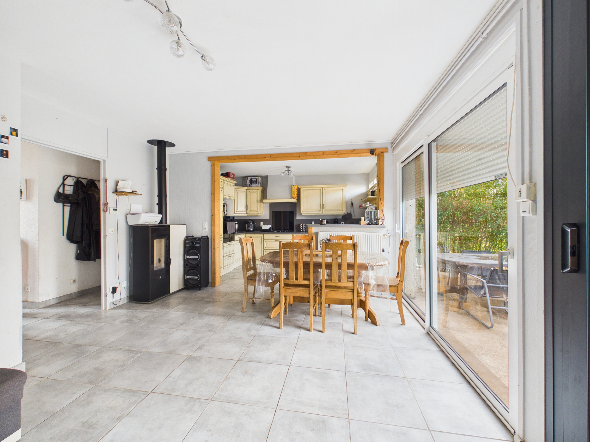 Cette Villa familiale à proximité du collège vous offrira un cadre de vie idéal pour une famille, elle se compose d'une belle pièce de vie lumineuse donnant sur le jardin avec une cuisine aménagée ouverte pour un espace plus convivial, une véranda vient compléter cet espace, accès garage et toilette au rdc.