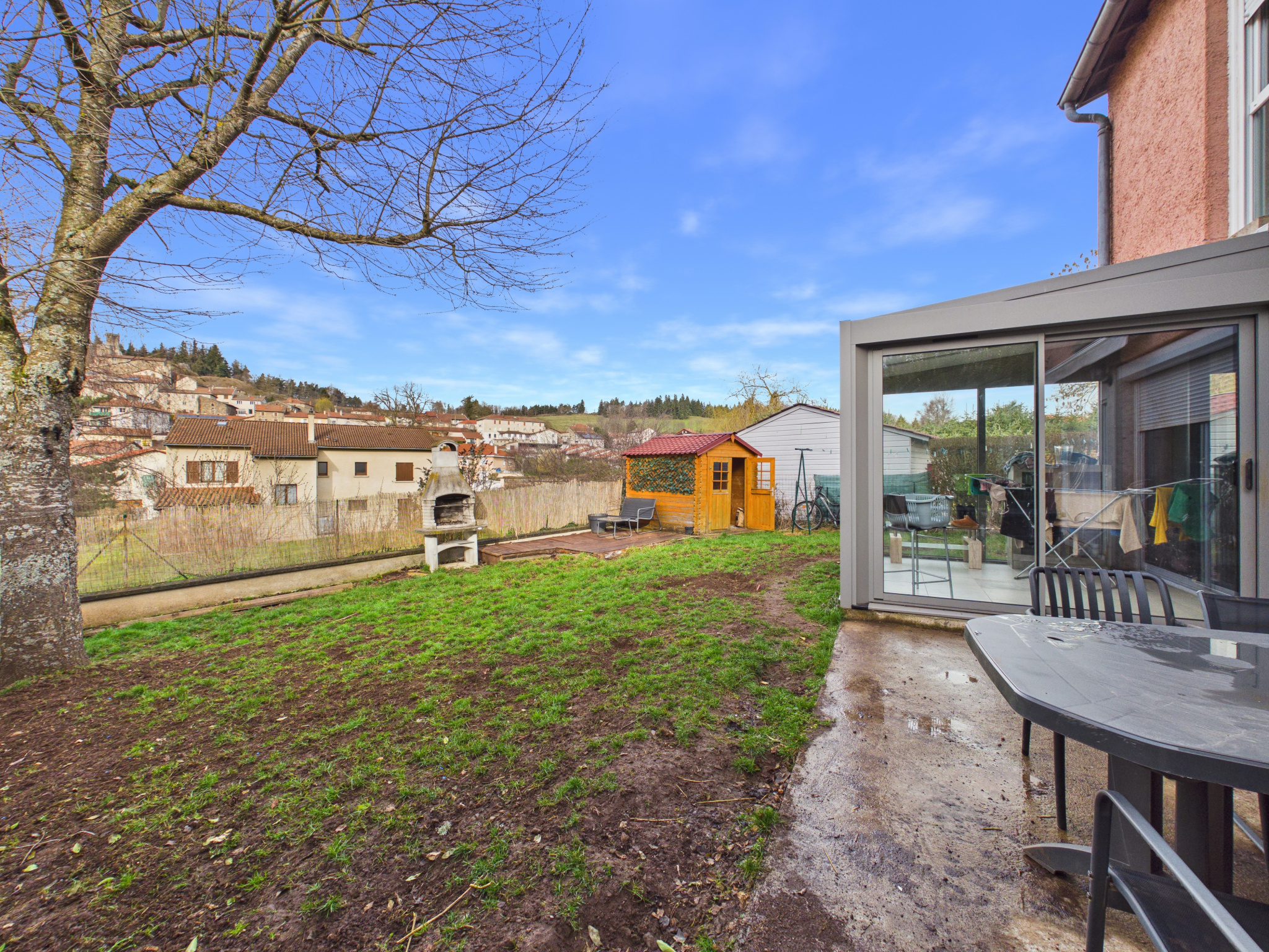 Le jardin dispose également d'un chalet bois, idéal pour du stockage ou un espace atelier.