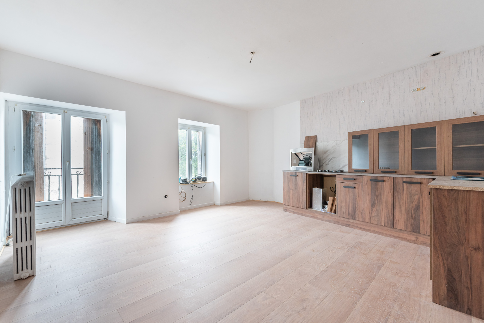 À l’étage, un appartement en cours de rénovation comprenant :