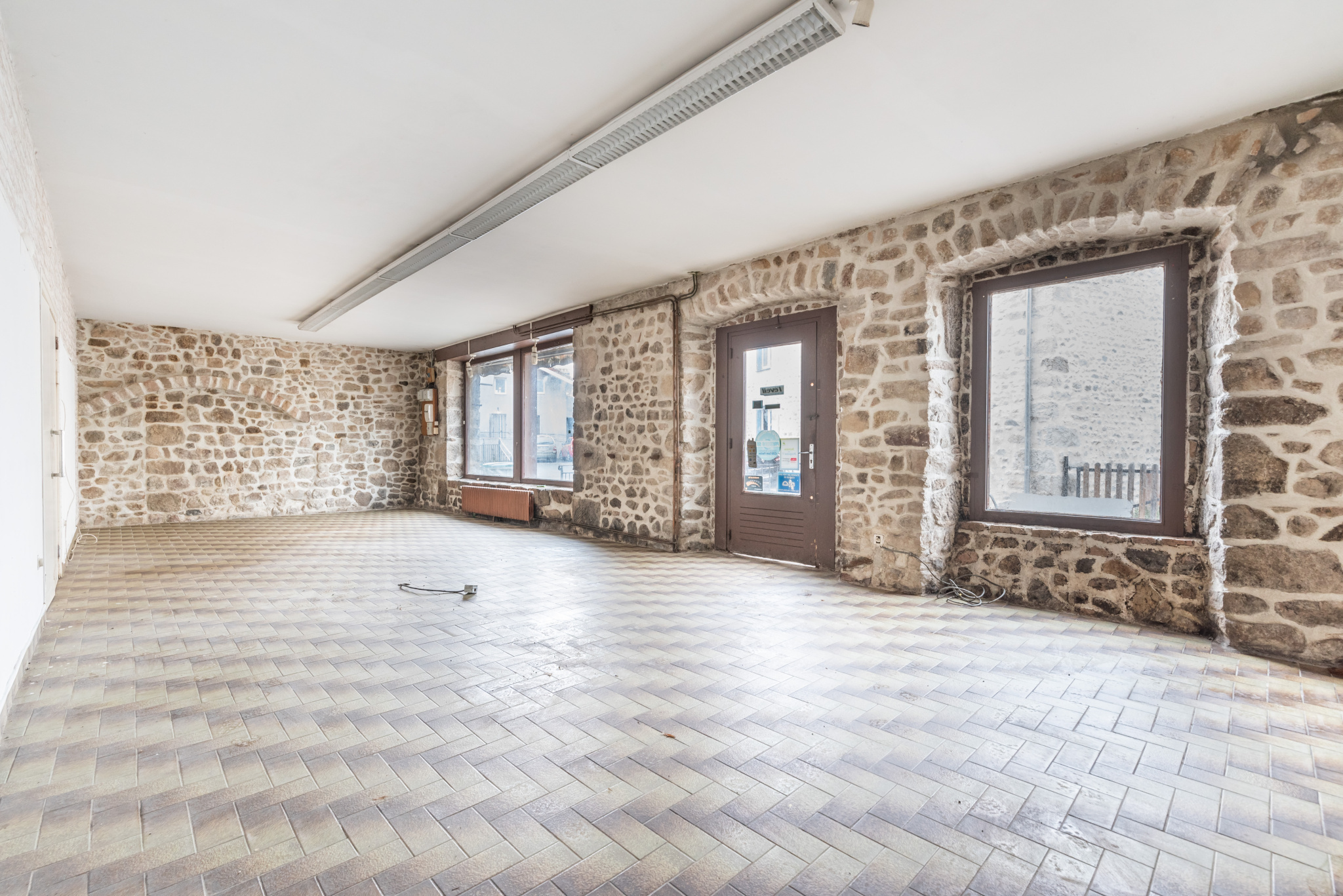 Au rez-de-chaussée, un ancien local commercial aux beaux volumes, idéal pour créer un espace professionnel, un atelier, un garage ou agrandir la partie habitation.